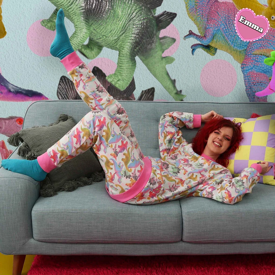 Feel wrapped up and cosy in this sweatshirt. Introducing the IC loungewear in our iconic dino print on mint and pink polkadot, in a relaxed style so you can layer up and co-ord with the matching Big Mood Fitted Joggers. A sweatshirt that is sure to be a staple to chill out in and make you roar with delight!