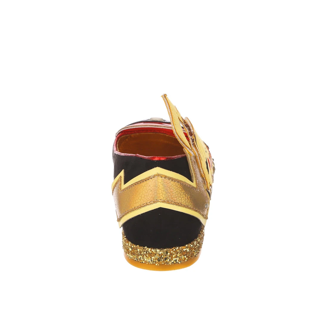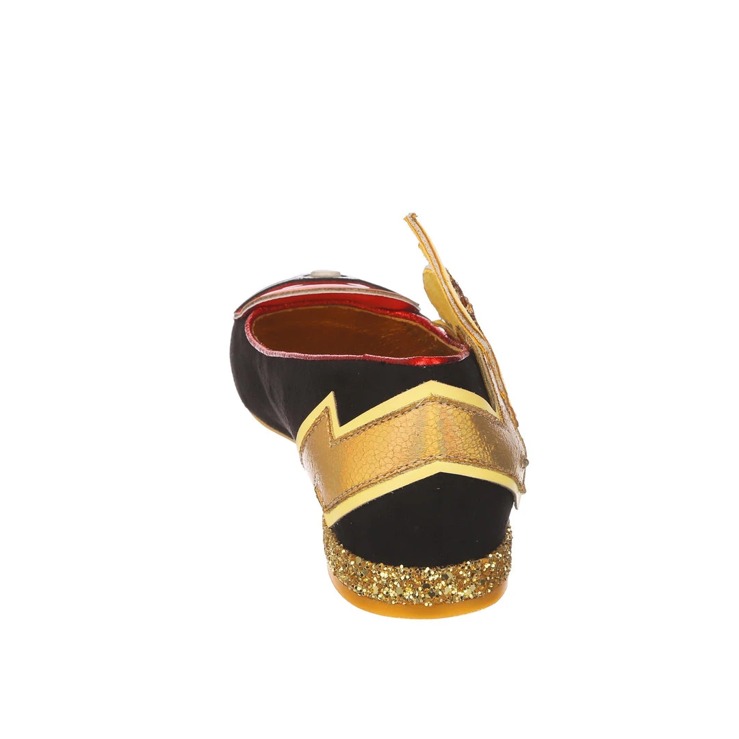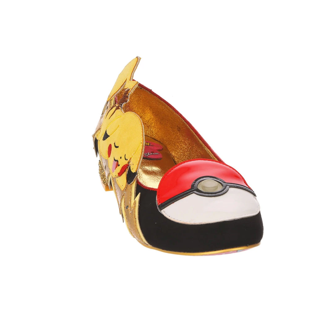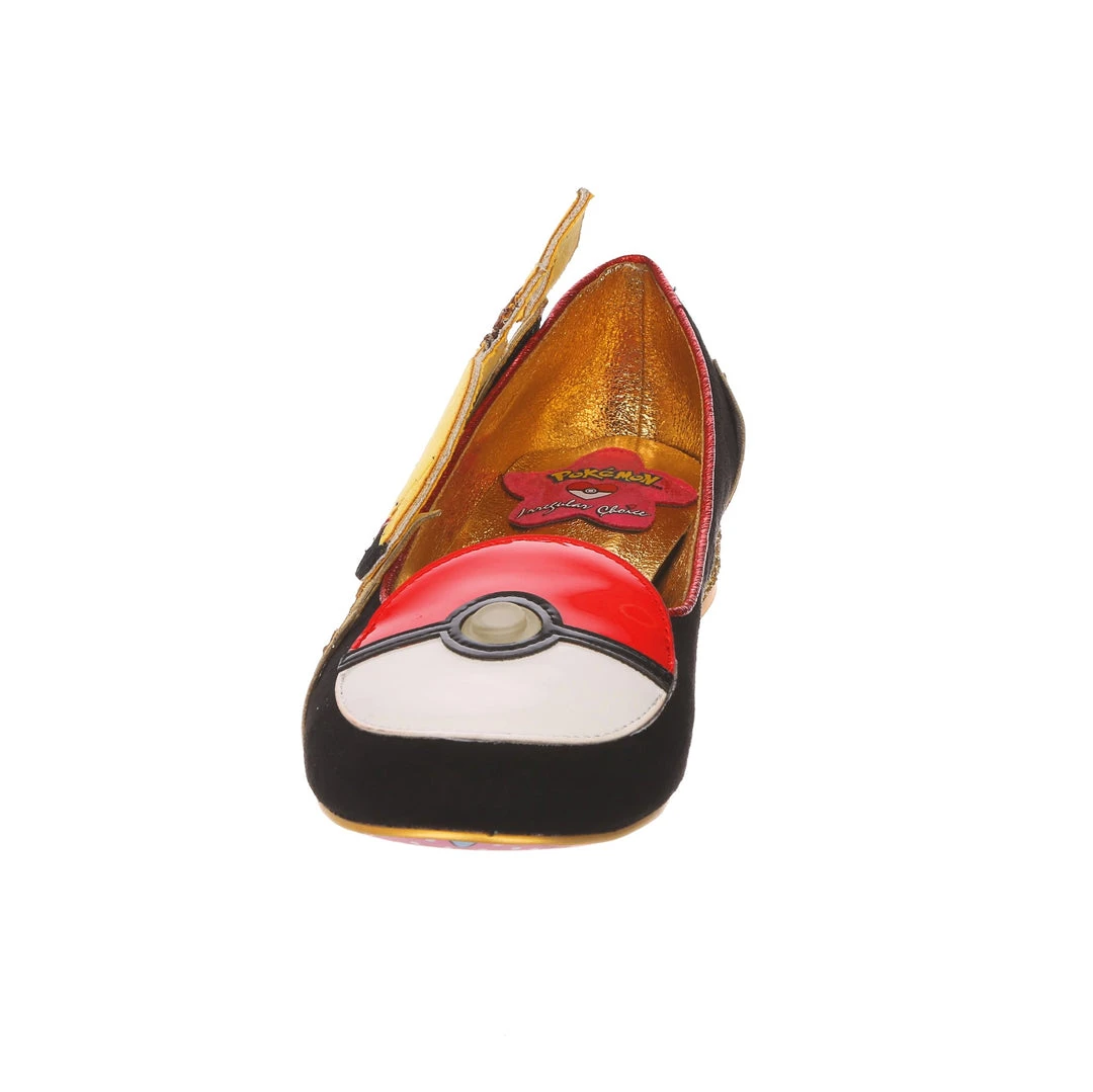 Everyone needs to rest and recharge sometimes, and here Pikachu is, showing us how! These adorable flat slip on shoes feature a shimmering golden lightning bolt dotted with flashing LED lights to shimmer like electricity. A Poké Ball adorns the toe (which also lights up!), and on the side we find an adorable applique of Pikachu having a little lie down! Great for all flats lovers who want a bit of a spark in their outfit.